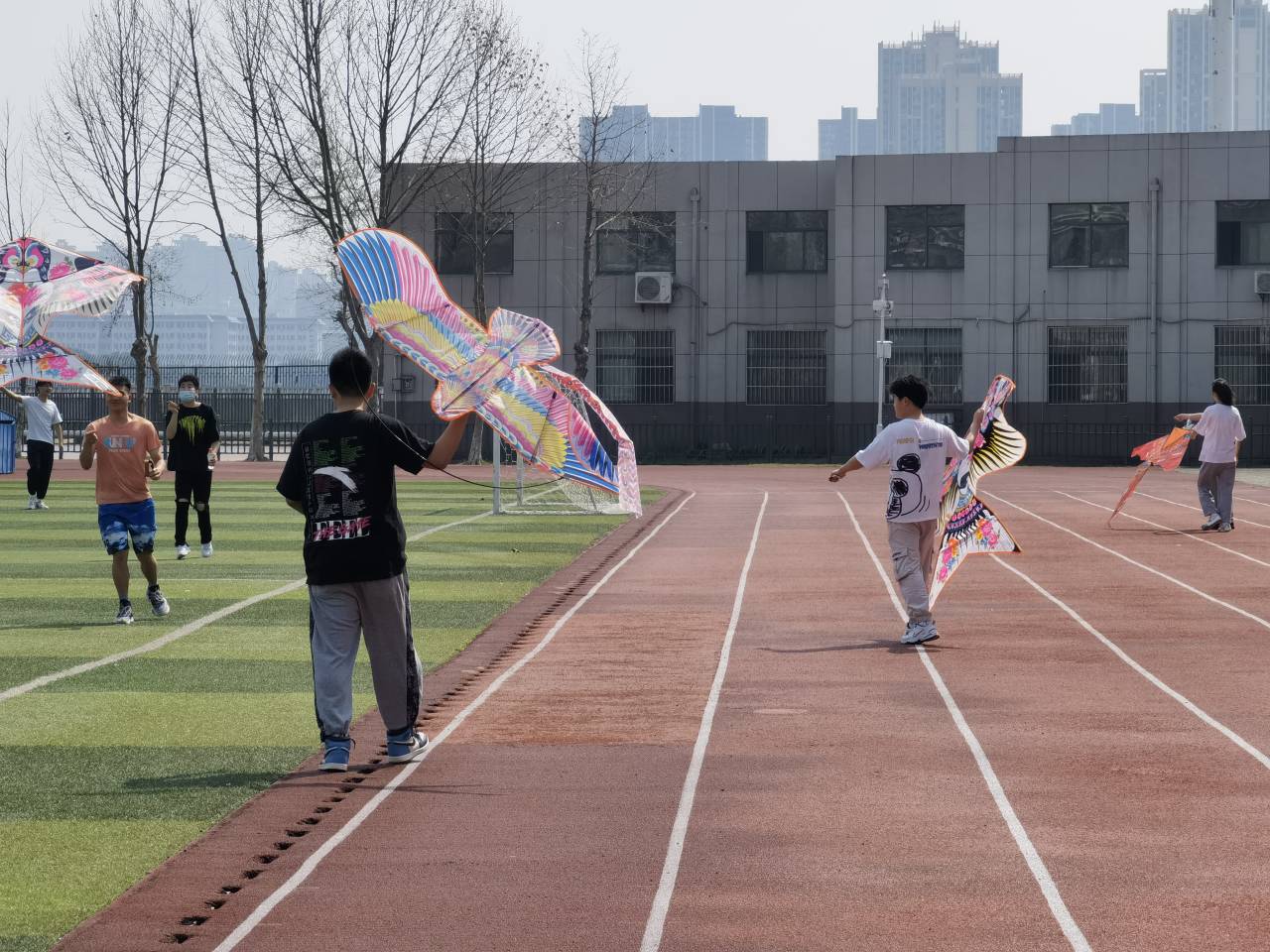 操场上,同学们精神十足。活动一开始,租赁棚前熙熙攘攘。所有人兴致勃勃地来到租赁棚排队借风筝。由于风筝数量有限,活动规定三至四人一队,一次半小时,次数不限。同学们在草坪上游走着,在赛道奔跑着,一只只形状各异的“动物”飞上蓝天,迎风飘扬。同学们灵巧的身影穿梭在偌大的操场上,灿烂的笑容在春日绽放。大家互相热情地互相交流放风筝的技巧。这温馨融洽的场面,如画成景。
