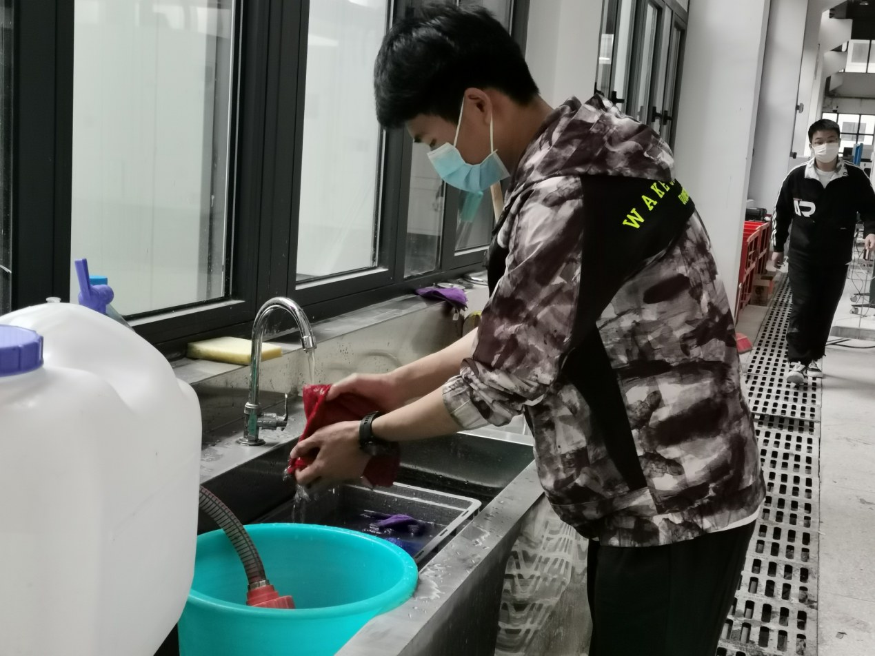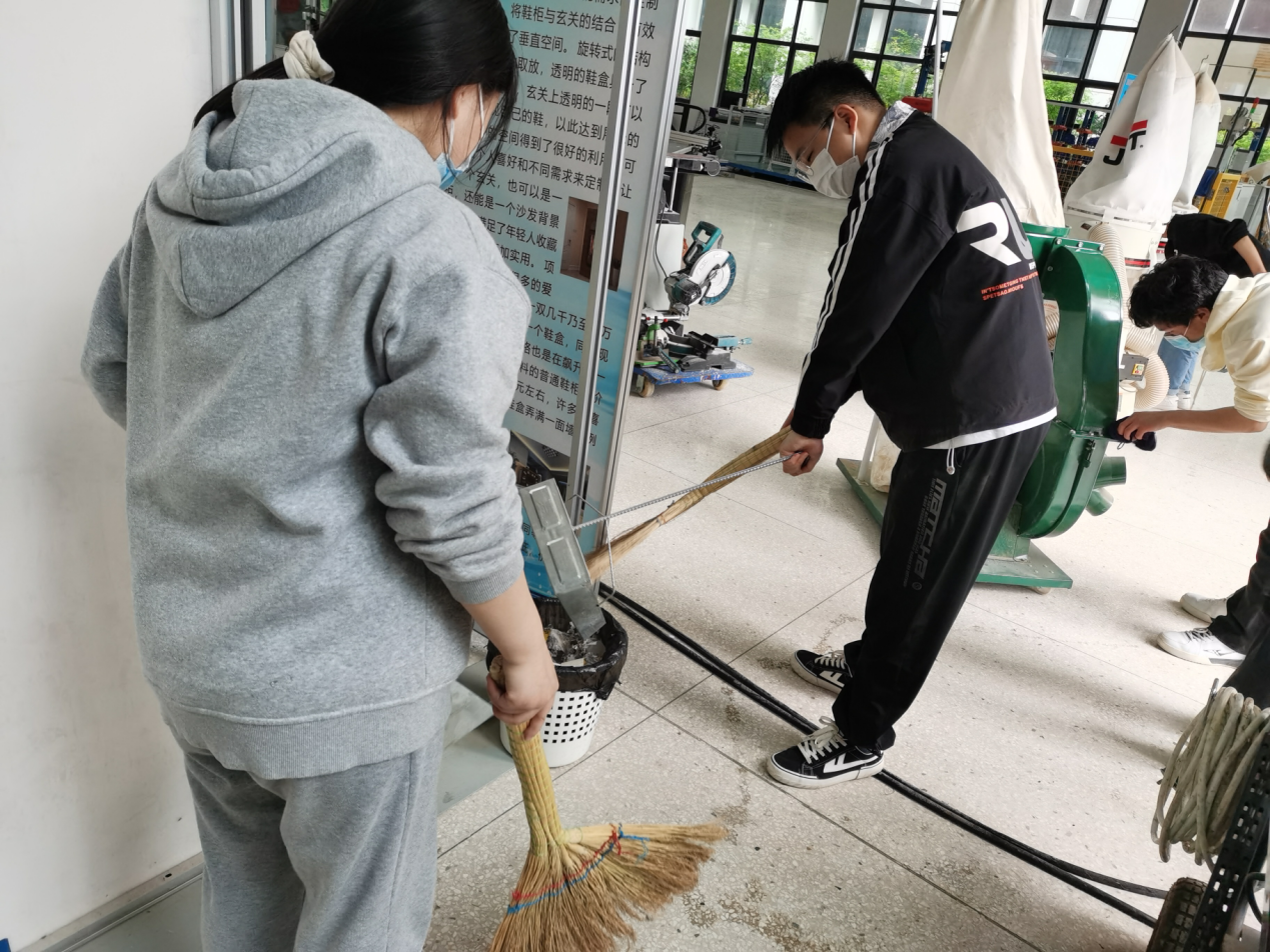 同学们在努力制作原型项目的同时,也不忘进行整理和收拾工作场地。大家都争先恐后的拿着工具挥汗如雨,将场地打扫的干净如初,让实训场所依然保持的最佳的使用状态。