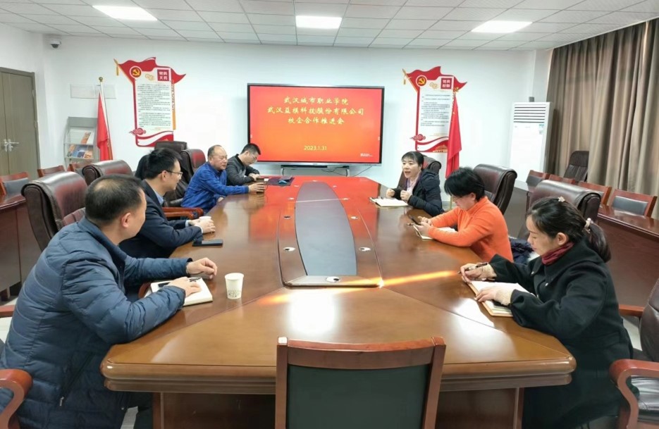 2023年1月31日下午,武汉益模科技股份有限公司总经理易平和教育事业部总监黄华来院交流研讨,机电工程学院院长禹诚、书记陈淑花、副院长何锡武,教师王燚、杨素华参会。
