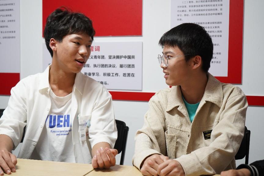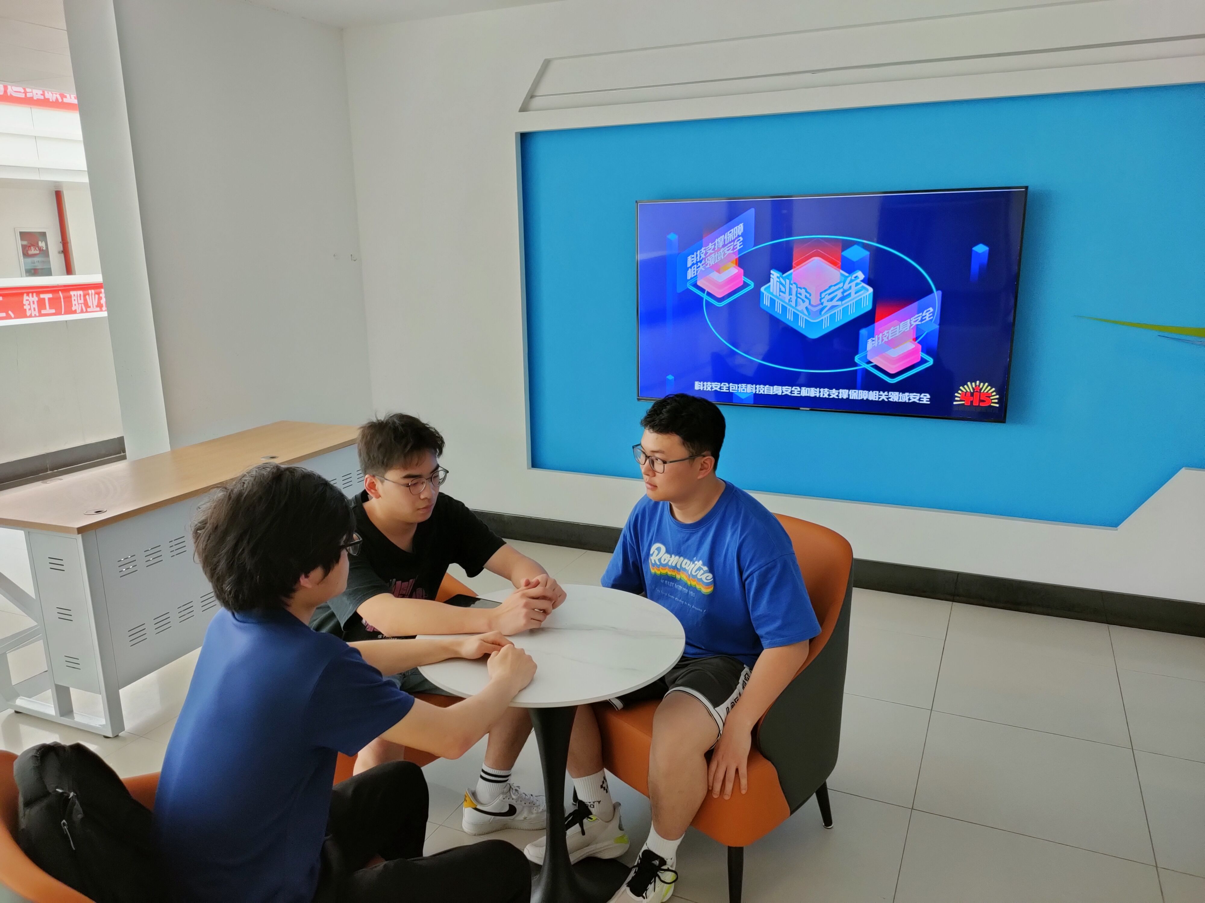 学生在一站式学生社区党团活动室讨论国家安全知识