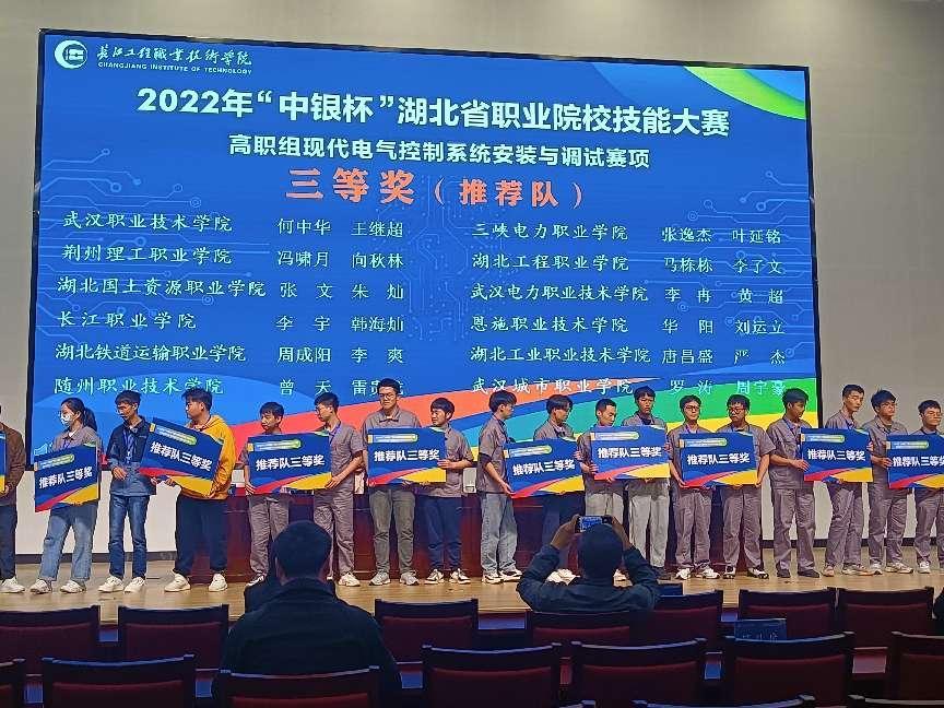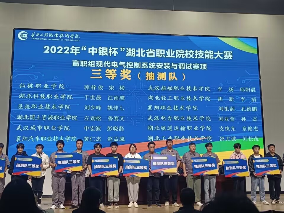 2023年4月25日至28日,2022年“中银杯”湖北省职业院校技能大赛(高职组)现代电气控制系统安装与调试赛项在长江工程职业学院举行,来自全省40所职业院校160名选手展开激烈角逐。在学院领导的大力支持和关怀下,机电工程学院何锡武副院长带队,郑火胜、王琪老师指导,参赛选手中推荐队队员:罗涛、周宇豪;抽测队队员:彭晓磊、申宏波四位同学组成的两支代表队参加了该项比赛。