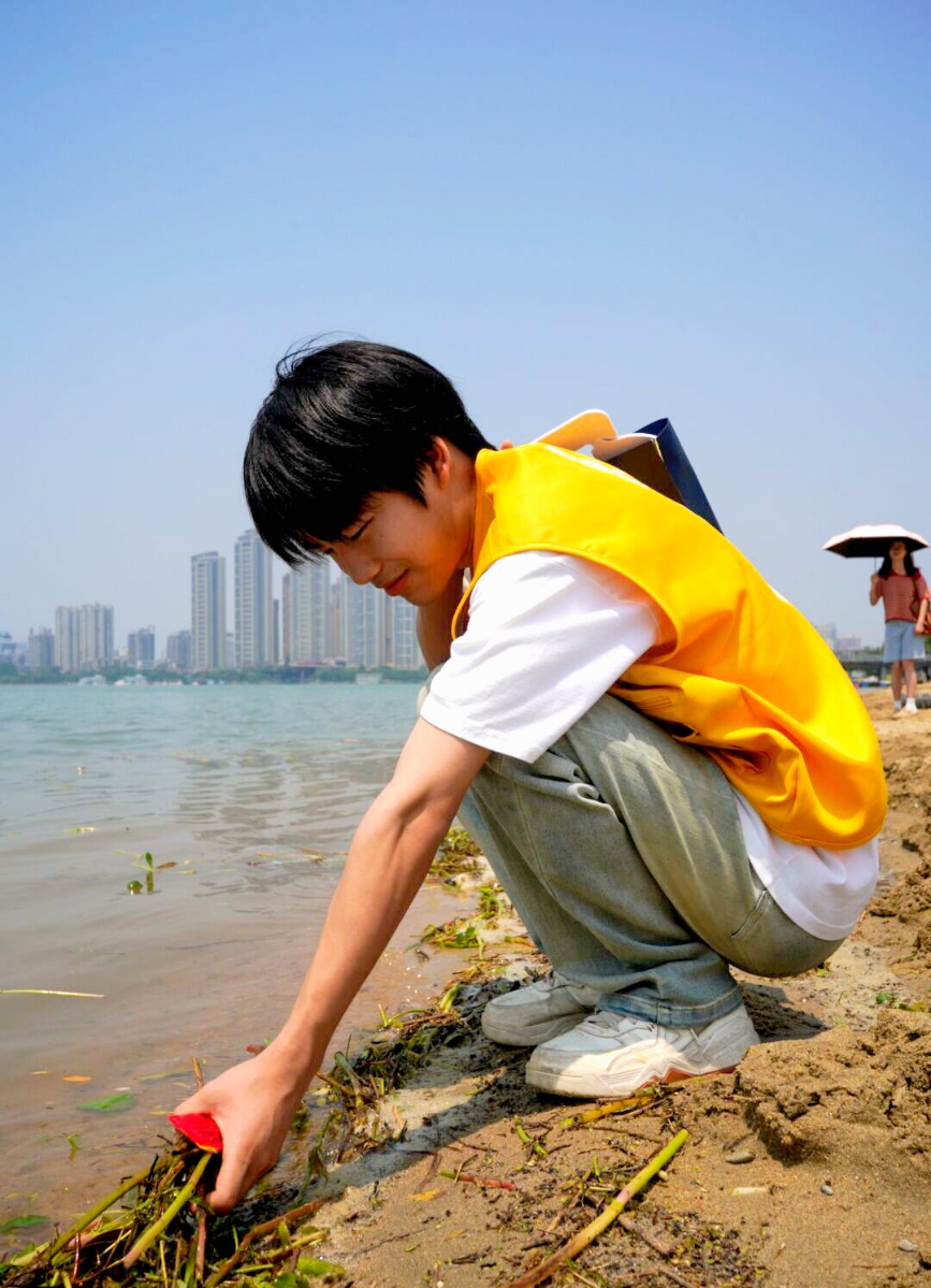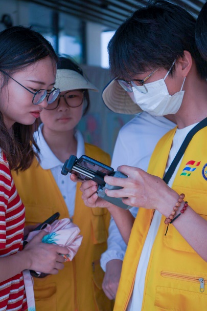 6月27日,一组队员利用襄阳市鱼梁洲和襄阳市汉江一级取水点利用我院无人机专业对周边生态进行高空观测,而另一组队员对游客遗留的垃圾进行清理对此流域的水质情况进行取样目测观察。