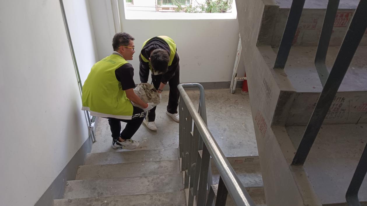 上午九点,所有人分成五队,做好安全保障措施后进入社区及居民楼楼道,进行杂物搬离、垃圾清扫、道路绿化带清理…志愿者们合理分工,各司其职。在活动中,大家积极行动,不怕脏,不怕累,明确分工,积极合作,全面清除了居民楼及楼外可能会影响居民出行的杂物,收获了社区居民们的一致好评。