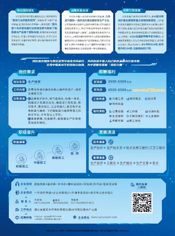 招聘邮箱:raycus_xyzp@163.com (有效投递请备注:岗位-学历-学校-姓名)