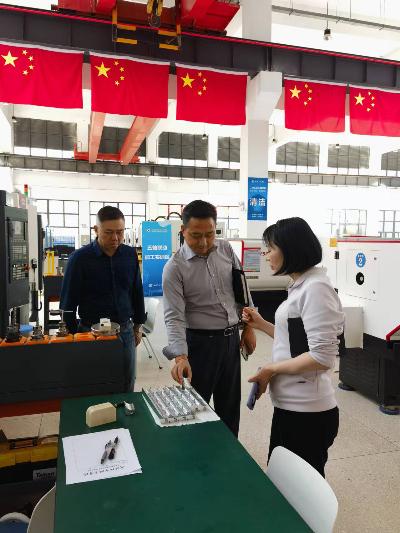 一行参观了学院的智能制造产教融合实践中心、产品设计与开发创新基地等实训场所,参观后双方进行了研讨交流,禹诚院长介绍了学院的师资力量、专业设置情况及人才培养模式,高会长一行对学院专业设置及人才培养模式给予了高度的肯定,并介绍了中国目前的模具行业发展情况、存在的技术难点。
