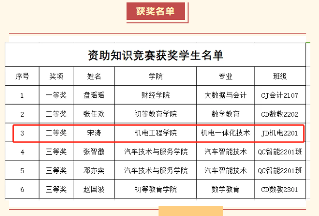 为了加深学生对资助政策的理解,学院积极组织班级学生参加资助知识竞赛答题活动。活动通过线上形式进行,题目涵盖了国家资助政策、申请流程、资助标准等多个方面。同学们积极参与,争相答题,不仅展示了他们对资助政策的深刻理解和熟练掌握,更激发了他们自主学习的热情。通过此次活动,同学们对资助政策有了更加全面、深入的认识,为后续申请资助奠定了坚实的基础。我院机电2201班学生宋涛,在资助知识竞赛中荣获二等奖。