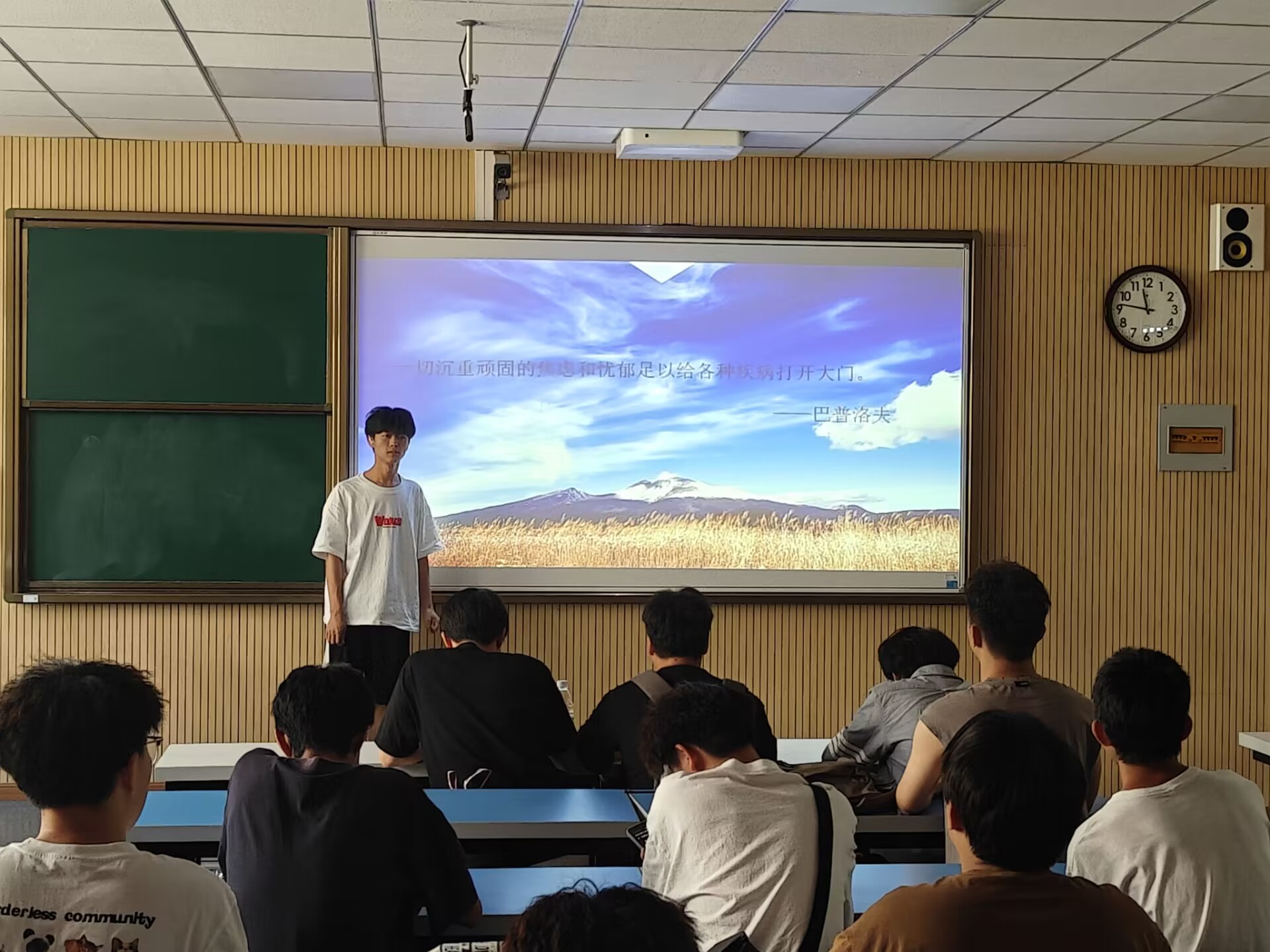 机械制造及自动化2302班心理委员朗诵了诗歌《当我真正开始爱自己》,优美的词句和深情的朗诵让学生们在一个温馨愉快的氛围中感受到了自我关爱的重要性。