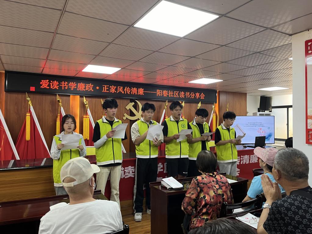 为深入推进社区廉政建设,营造风清气正的廉洁氛围,提升社区居民的道德素养和文化品位,武汉城市职业学院机电工程学院志愿服务队赴关山街道阳春社区开展了以“爱读书学廉政·正家风传清廉”为主题的读书分享活动。本次活动旨在通过引导社区居民阅读廉洁书籍,传承清廉文化,增强廉洁自律意识,共同营造廉洁、和谐、文明的社区氛围。