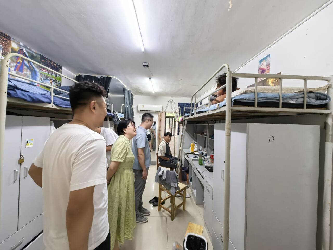 王副院长、陈书记、杨主任逐一走访了机电学院各个班级宿舍,与同学们面对面交流,并视察了宿舍的卫生和安全状况。在走访过程中,院领导了解学生在校生活情况,解答学生在学习、生活上的困惑,收集学生对学院工作的意见和建议;同时向同学们强调了宿舍卫生和整洁的重要性,提醒大家要注意用电安全,禁止在宿舍使用违规电器。