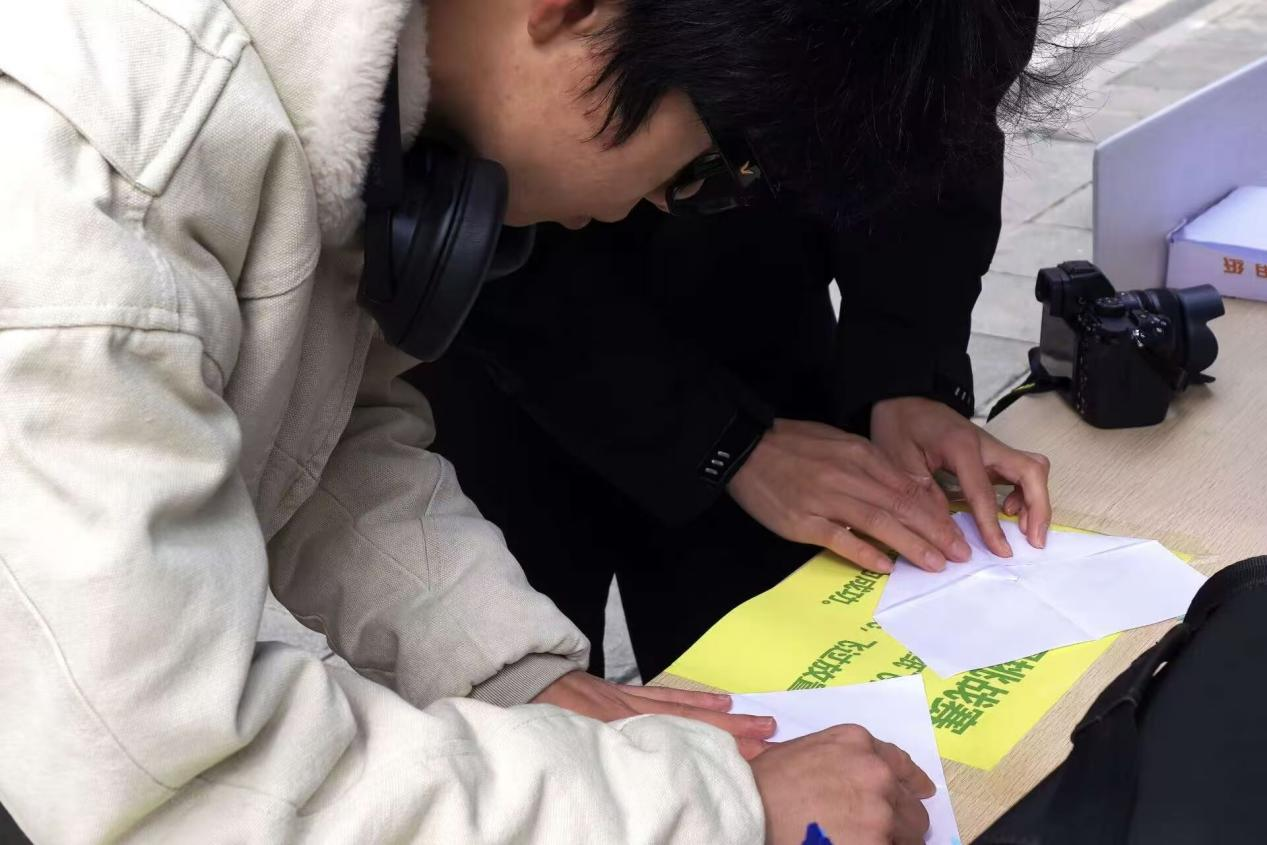 活动现场,志愿者们分工合作,热情引导同学们参与志愿服务,提供咨询,并组织了一系列富有趣味性的互动环节。其中,折纸飞机穿圈挑战尤为引人注目,参与者不仅锻炼了动手能力,还在轻松愉快的氛围中深刻体会到团结协作的力量。除此之外,志愿者们还通过精心布置的展板和宣传册,向大家介绍雷锋精神的时代价值,激励更多人加入志愿服务行列。