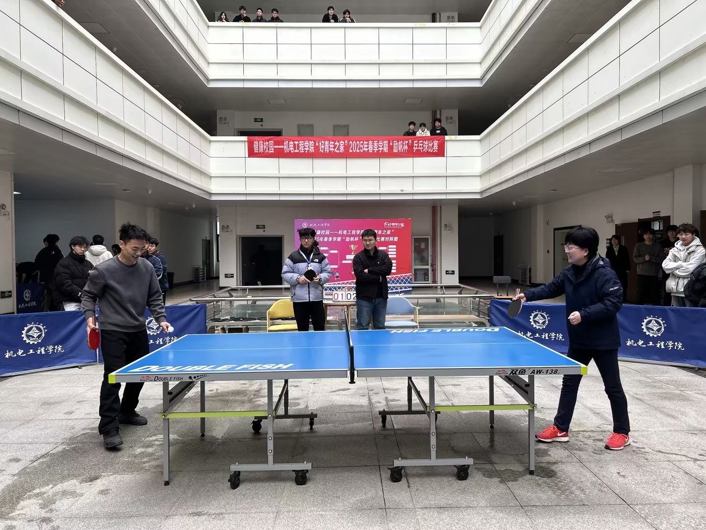 2025年3月10日上午大课间,机电学院2025年春季学期“励帆杯”乒乓球联赛在二楼中厅小广场正式拉开帷幕,一场充满活力与激情的体育盛宴就此开启。
