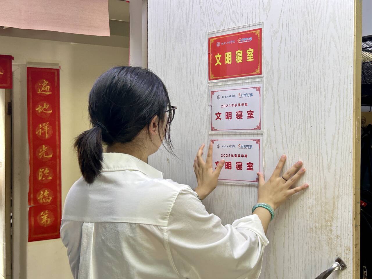 在挂牌仪式上,各班班主任、辅导员老师们对获奖宿舍表示了热烈的祝贺,称赞他们在寝室文明建设中的出色表现,并鼓励他们继续保持,发挥引领作用,带动更多寝室加入到文明建设的行列中来。文明寝室建设是学院德育工作的重要一环,它不仅关乎学生的日常生活习惯,更与校园文化的营造、和谐校园的构建息息相关。本学期,同学们积极参与寝室文化建设,用实际行动为寝室增添了一份温馨与和谐,共同营造了一个宜居宜学的良好环境。
