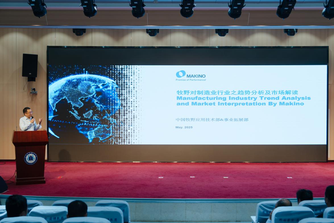 上午9点在机电工程学院报告厅拉开帷幕。首场讲座由牧野汽车装备(武汉)有限公司应用工程部高级部长范广辉先生主讲,主题为《牧野对制造业行业之趋势分析及市场解读》。
