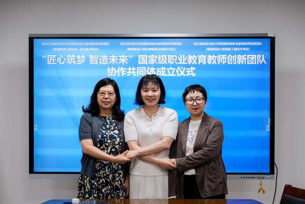 团队联建,共谋发展。会议举行了重要仪式——“匠心筑梦 智造未来”国家级职业教育教师创新团队协作共同体成立仪式。武汉城市职业学院、苏州工业职业技术学院、武汉船舶职业技术学院三校的装备制造大类国家级职业教育教师创新团队将携手合作,共建共享,协同发展。