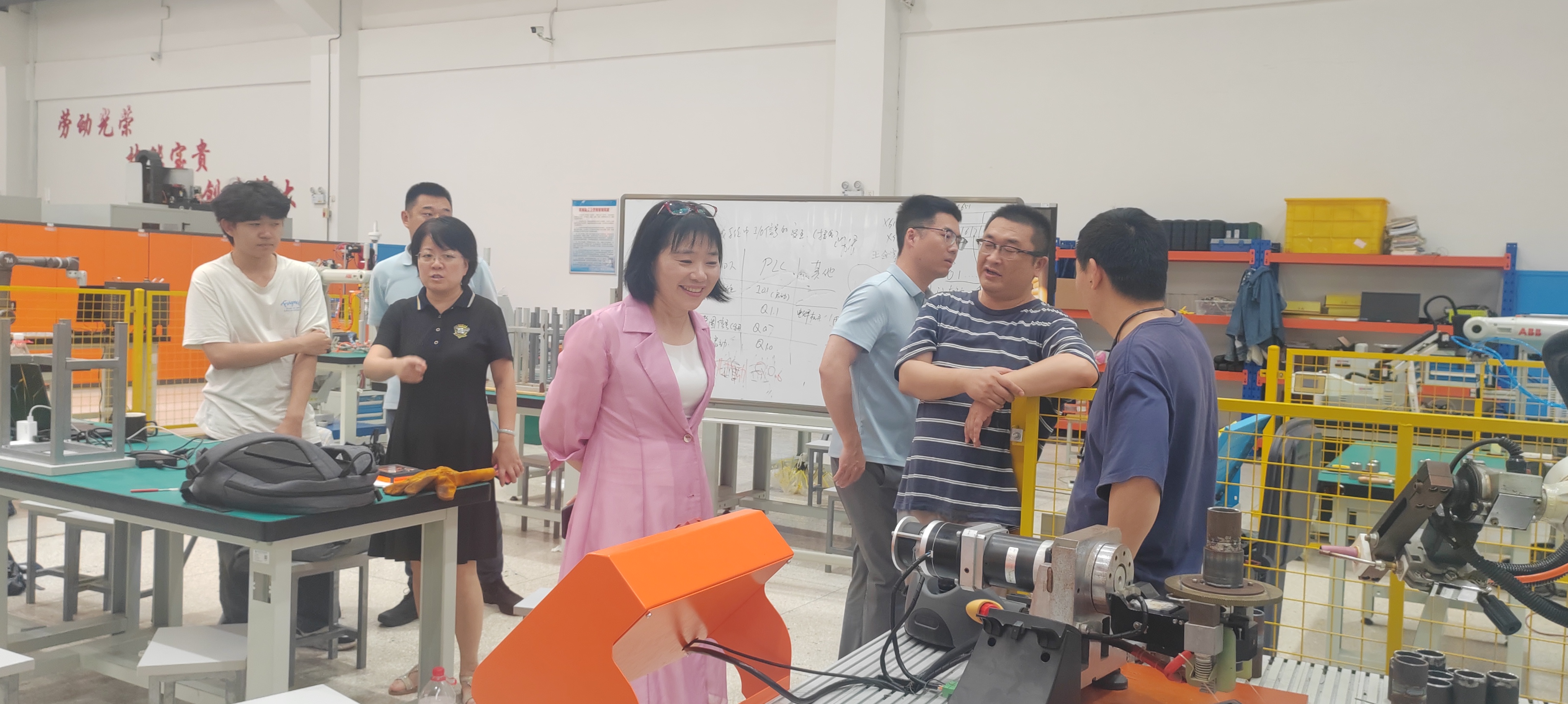 为扎实推进 2025 年湖北省职业技能大赛备赛进程,及时掌握各赛项备赛情况,近日,机电工程学院开展备赛检查推进工作。学院院长禹诚、党总支书记陈淑花、副院长王燚、党总支副书记杨中原组成检查小组,深入各实训场地,与指导教师和参赛学生亲切交流。