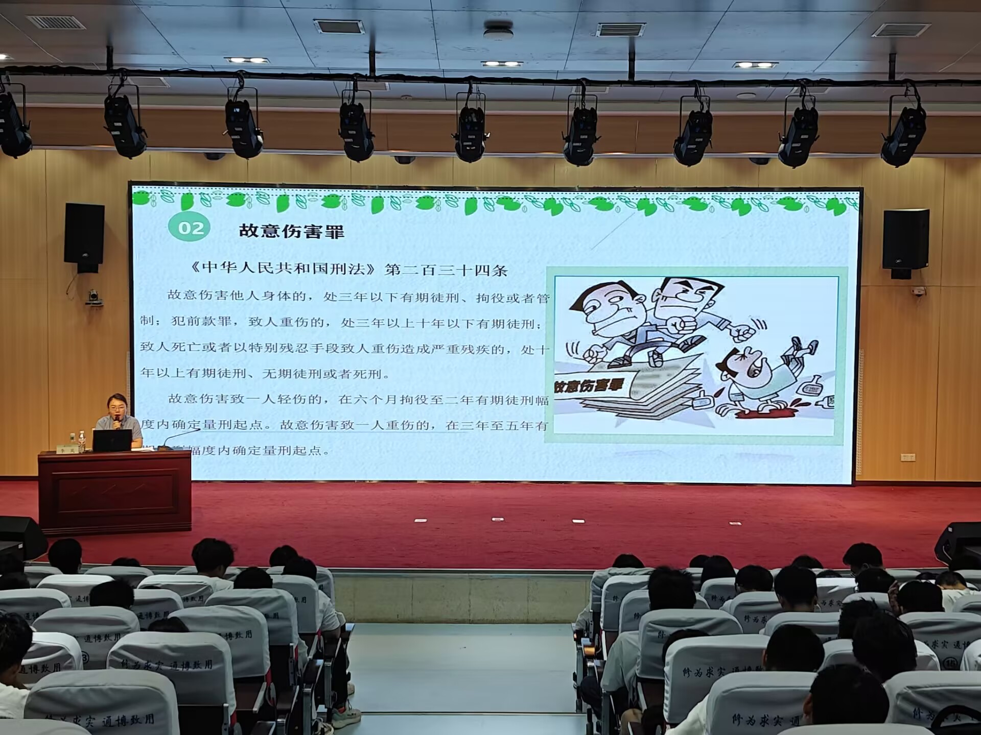 为增强新生法治意识,筑牢校园安全防线,9月9日,武汉城市职业学院机电工程学院特邀武汉市洪山区人民检察院检委会委员、第一检察部主任李凤检察官开展“知法于心 守法于行”专题法制讲座。作为荣获“湖北省检察机关先进个人”“武汉市十佳公诉人”等多项荣誉的资深检察官,李凤结合洪山区高校典型案例,为500余名大一新生带来一堂生动的法治教育课。