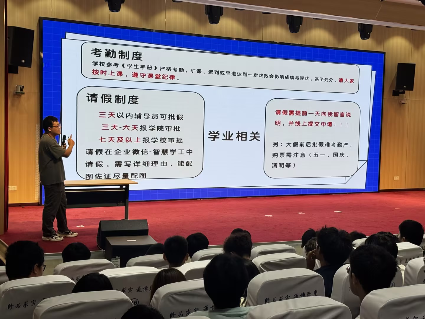 此外,新生各部和各班分别开展了由辅导员和班主任主持的开学第一课。在这些课程中,辅导员和班主任们不仅向新生们介绍了学院的规章制度,还分享了学习方法和生活技巧,帮助新生们尽快适应大学生活。同时,也强调了安全教育和心理健康的重要性,确保新生们在学习和生活中都能保持良好的状态。