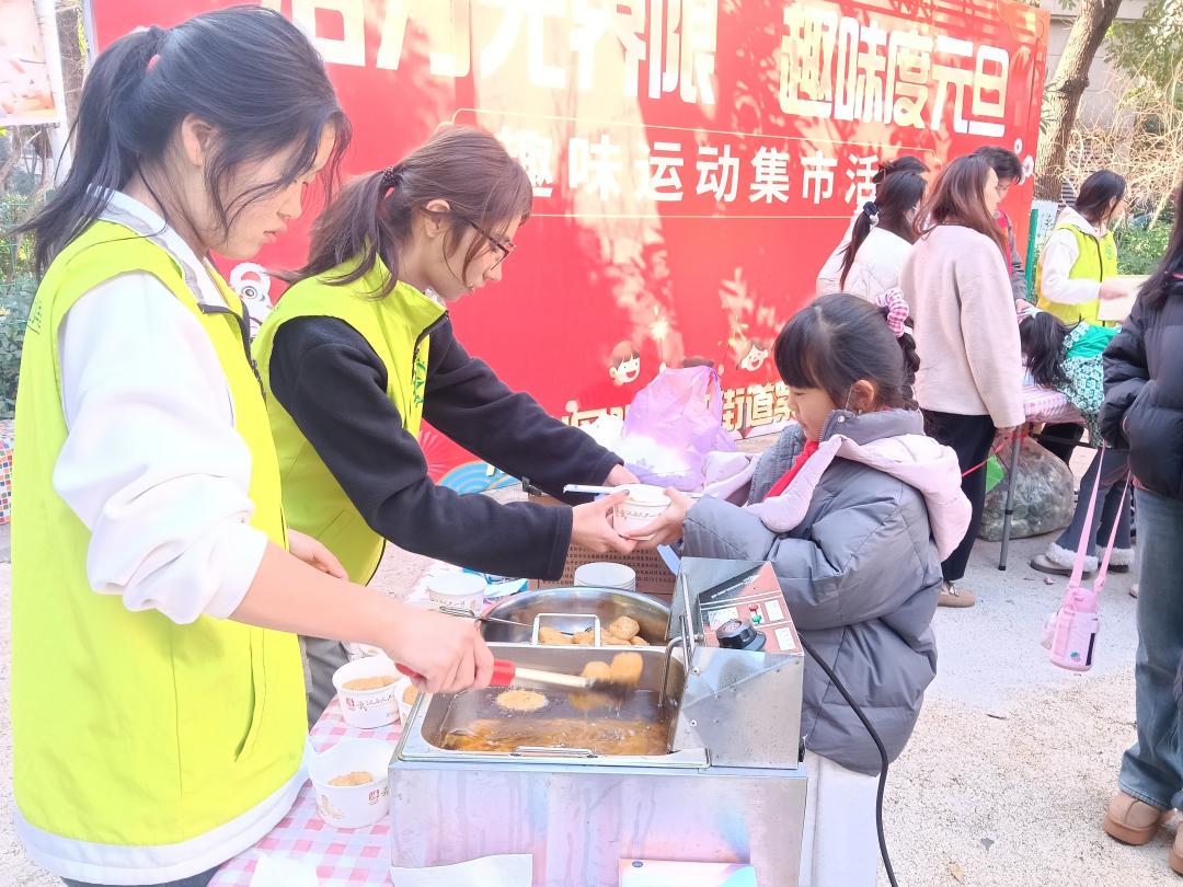 12月26日,学院同时开展两项志愿服务活动。在紫云府社区,志愿者们参与活力无界限·趣味度元旦趣味运动集市活动。活动前,志愿者们进行吹气球、清洗餐具、布置彩带、整理礼品等准备工作。活动中,志愿者们表演节目,并在美食区、运动区等不同区域带领居民和小朋友参与互动游戏。